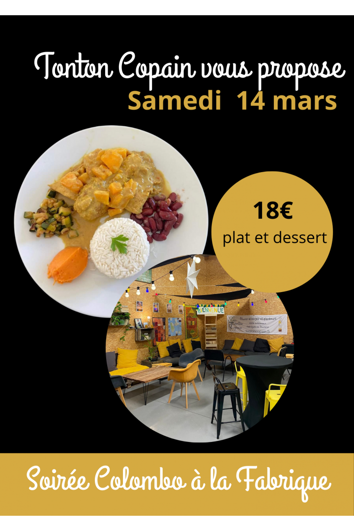 Repas : plat et dessert, dans l'ambiance de la Fabrique.