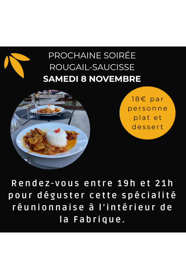 Repas : plat et dessert, dans l'ambiance de la fabrique.
