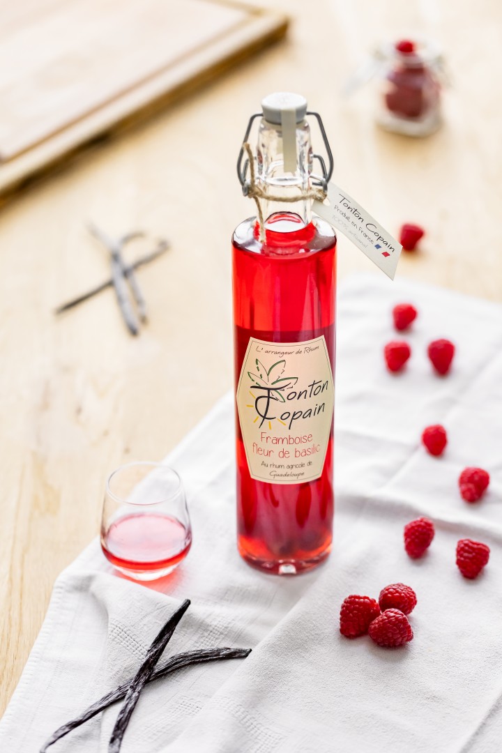 Rhum aux parfums d'été, la fleur de basilic végétalise harmonieusement finesse de la framboise cueillie en Touraine.
